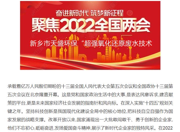 中國高新技術(shù)網(wǎng)發(fā)布:《關(guān)注:解碼科技創(chuàng)新》——新鄉(xiāng)市天盛環(huán)?!俺瑥?qiáng)氧化還原廢水處理技術(shù)”